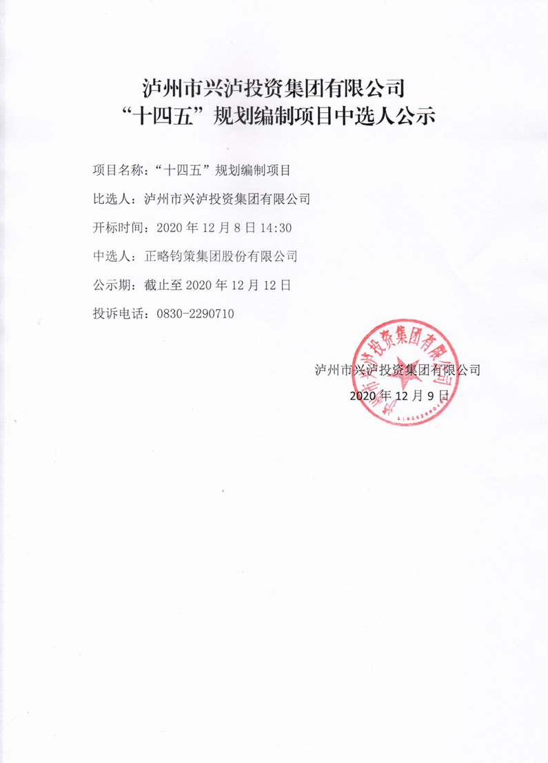 瀘州市興瀘投資集團(tuán)有限公司“十四五”規(guī)劃編制項目中選人公示