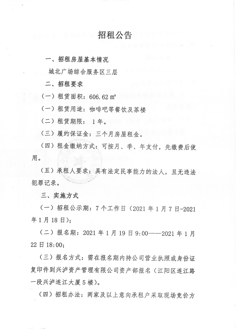 招租公告-城北廣場(chǎng)綜合服務(wù)區(qū)三層