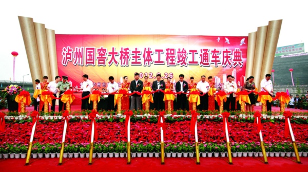 6月26日,興瀘集團作為項目業(yè)主投資建設(shè)的國窖長江大橋經(jīng)過3年多的艱苦努力,終于迎來了全市人民期盼已久的國窖長江大橋竣工通車典禮。上午9時,在歡慶的鑼鼓聲中,由市住房和城鄉(xiāng)建設(shè)局、興瀘集團主辦的國窖長江大橋主體工程竣工通車慶典在大橋東岸橋面舉行。市委書記劉國強,市委副書記、市長劉強等市領(lǐng)導(dǎo)為大橋通車揭幕、剪彩,省住建廳、國家開發(fā)銀行四川省分行領(lǐng)導(dǎo)、興瀘集團董事長、總經(jīng)理黃毅等有關(guān)單位以及市級有關(guān)部門、單位負(fù)責(zé)人和施工單位代表等出席通車慶典。
